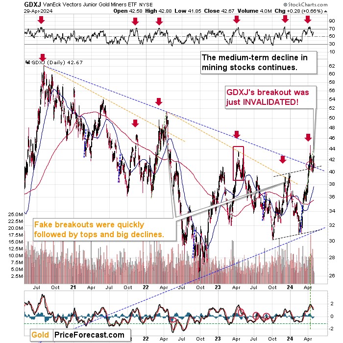 Indeed, gold hasn’t made a new intraday high – neither yesterday nor today. Instead, gold moved decisively lower.
